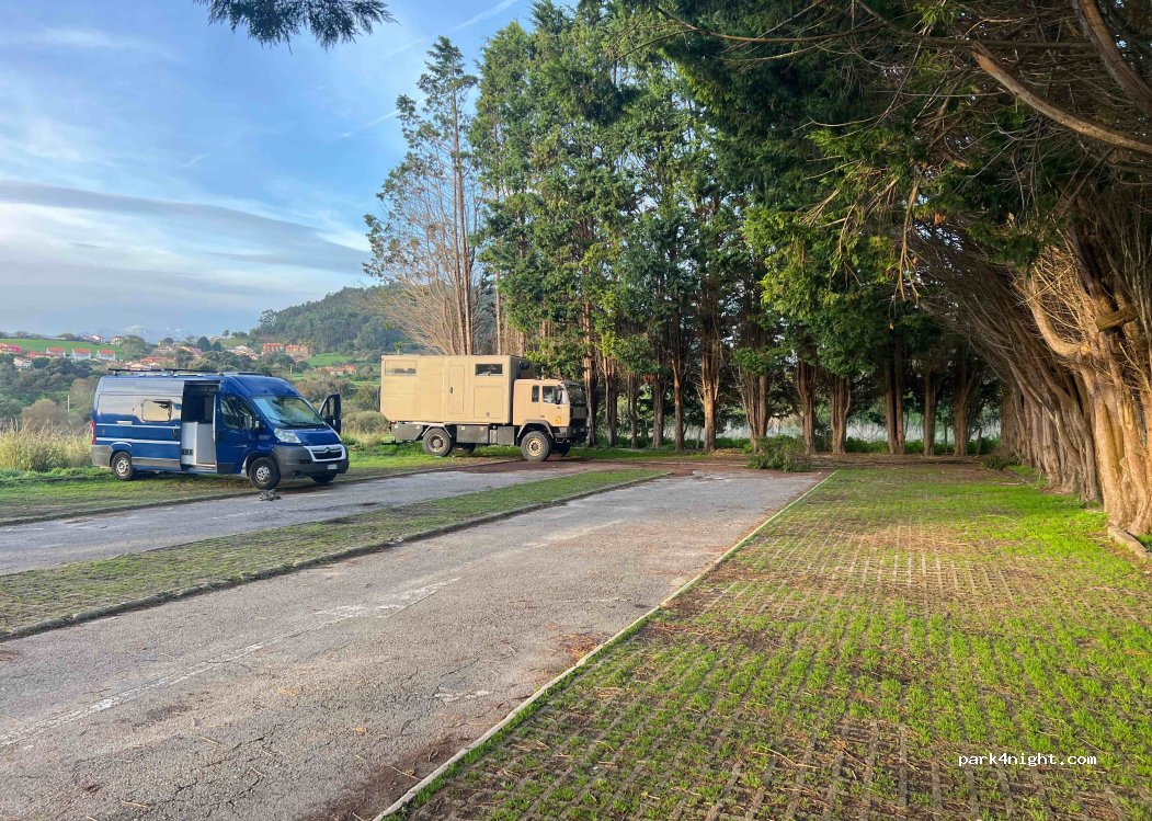 Hemos pasado una noche muy tranquila, no hemos tenido problema. Había sitio de sobra, éramos 4 furgos. El parking está perfectamente nivelado. La playa de Prellezo es espectacular.