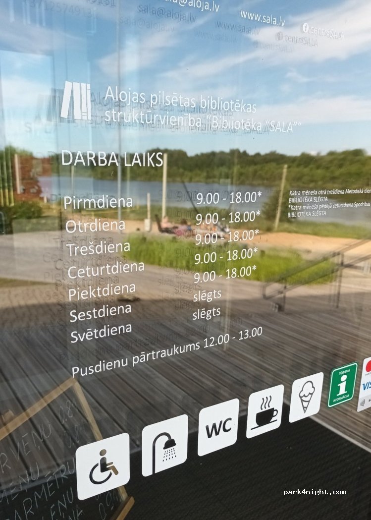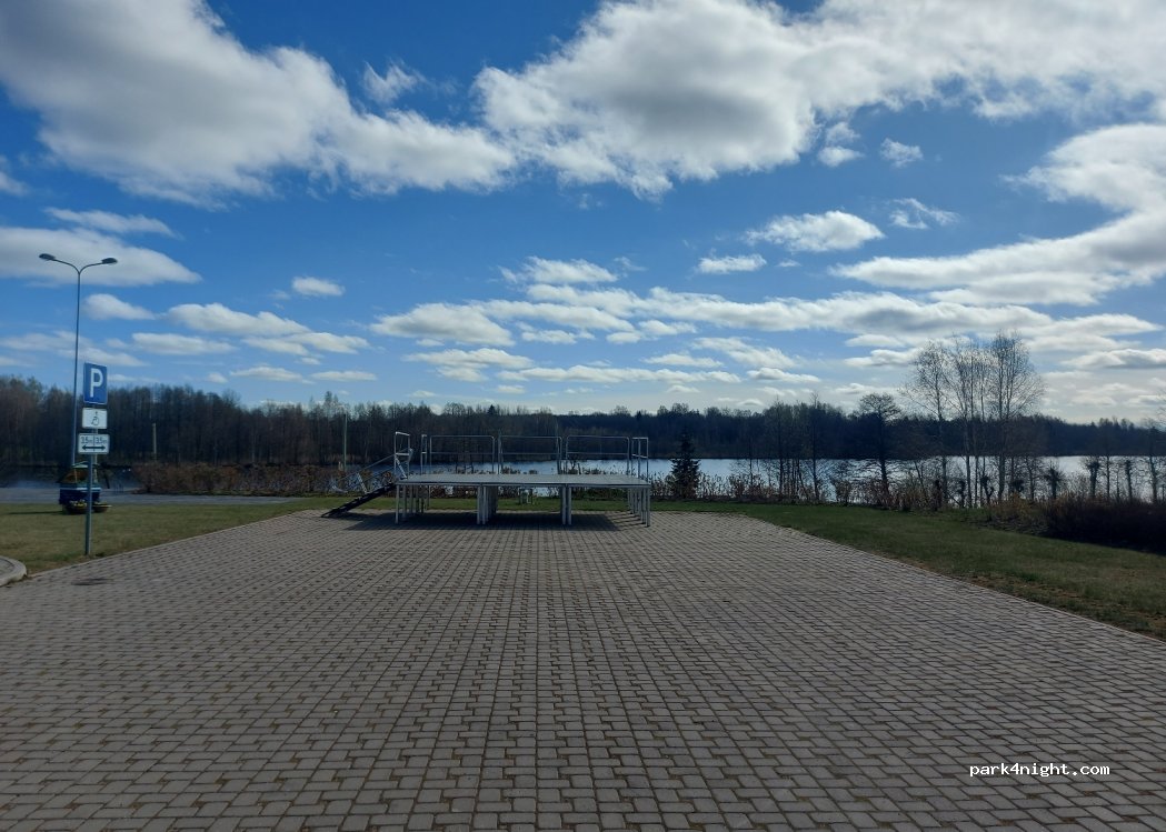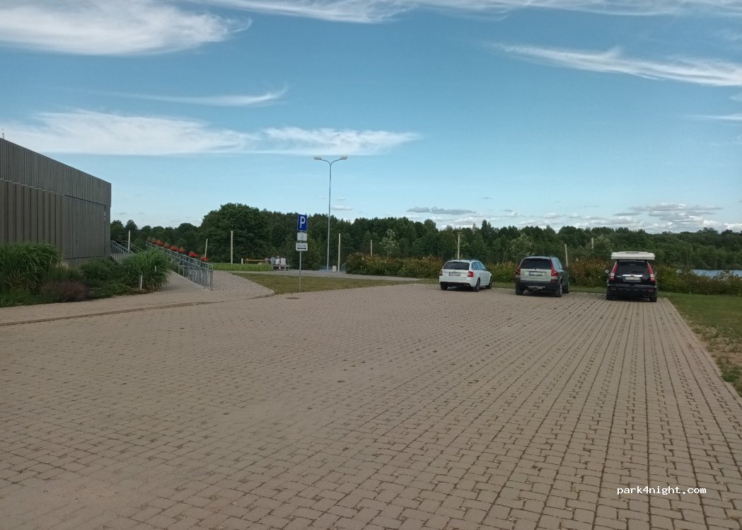 Parking place near local culture center and lake. Its in the center of village but on weekends its really quiet and nice. Lake nearby and also beach voleyball grounds. We just made rest stop there, but in my opinion, staying overnight would be without problems here. Access to wc and showers only during center working hours.