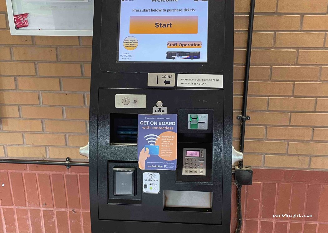Der beste Platz um Chester zu besuchen. Beschildert vor dem kleinen Kreisverkehr mit "overheight vehicles" .Trotzdem ein PKW dort! Aber 8 Plätze und wir waren das einzige Wohnmobil. Bus für 2 um £5 hin und retour mitten in die Altstadt von Chester. Entspannter gehts nicht. Vorbei an Rhodee P. War komplett voll. P&R wirklich eine gute Wahl. Übernachten sicher möglich, für uns zu laut.