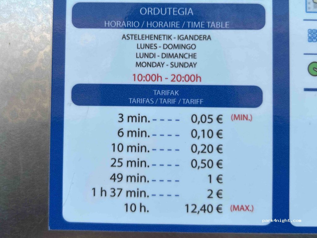 I camper con lunghezza superiore a 5 metri non possono sostare, ne’ di giorno, ne’ la notte (in tutta Hondarribia!). Dopo tre tentativi tutti coronati dall’intervento della polizia, me ne sono andato.