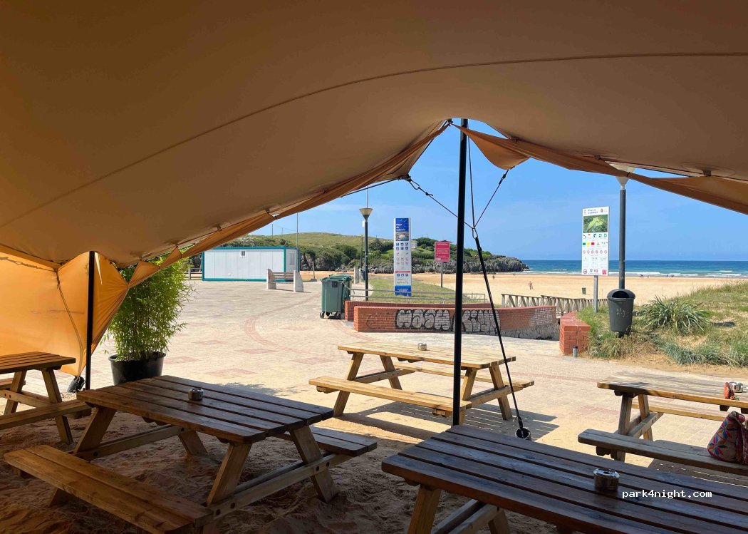 Bonito estacionamiento justo en la playa. Sin embargo, solo para vehículos HASTA 2M. Tiendas accesibles a aproximadamente 1 km, duchas de playa y baños disponibles en verano. Justo al lado de un chiringuito. Pasé 3 días y noches aquí y nunca tuve ningún problema. Si hay algún problema, hay un camping justo al lado.