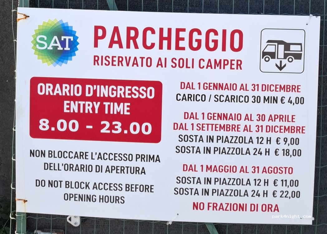 Schade das man keine 0 Sterne geben kann ich wollte mit meinem T4 übernachten die Schranke ging nicht auf eine Frau mit Auto kam an und meinte auf Italienisch nicht Campen mit Auto nur Wohnmobil warum weiß ich nicht es gibt nichts dort außer viel Geld was man Bezahlen muss. Für drauf und runter fahren 30min 4€ 24H 20€