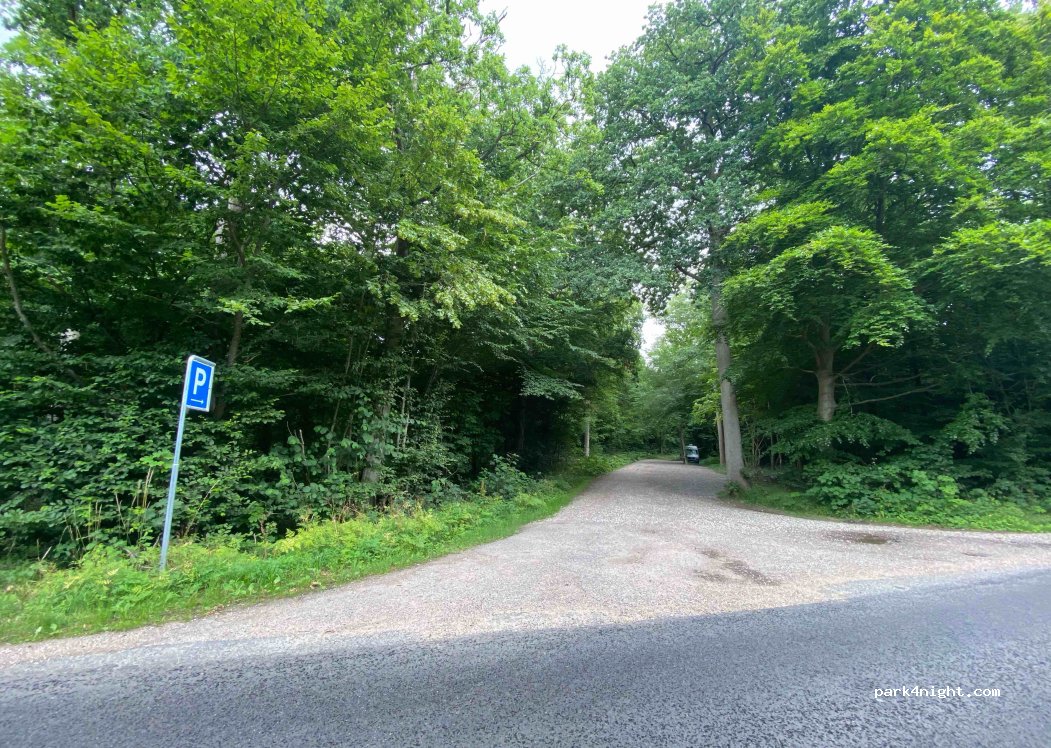 Parking au bord d'une route calme avec emplacement pour 4 camping-cars et une poubelle. Beaucoup d'arbres entourent la zone pour fournir de l'ombre et de l'intimité. À distance de marche de la ville voisine qui a des magasins et des restaurants. J'ai passé une nuit ici et j'ai adoré.