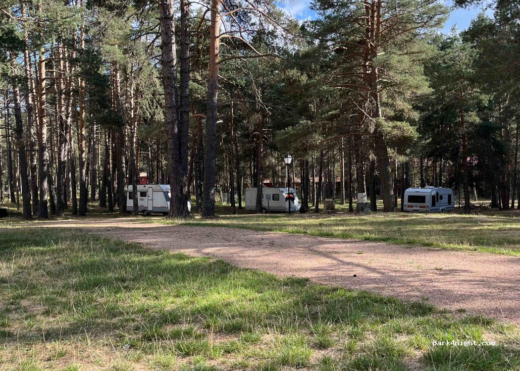 Camping pequeñito pero muy acogedor en medio de un bosque de pinos. Se acampa en el bosque de manera aleatoria. Tiene un restaurante y los aseos y los lavaderos están limpios y un buen detalle, los baños tiene calefacción !perfecto! Coche cama y un adulto 15,5€ la pernocta. Me ha encantado, volveré.
