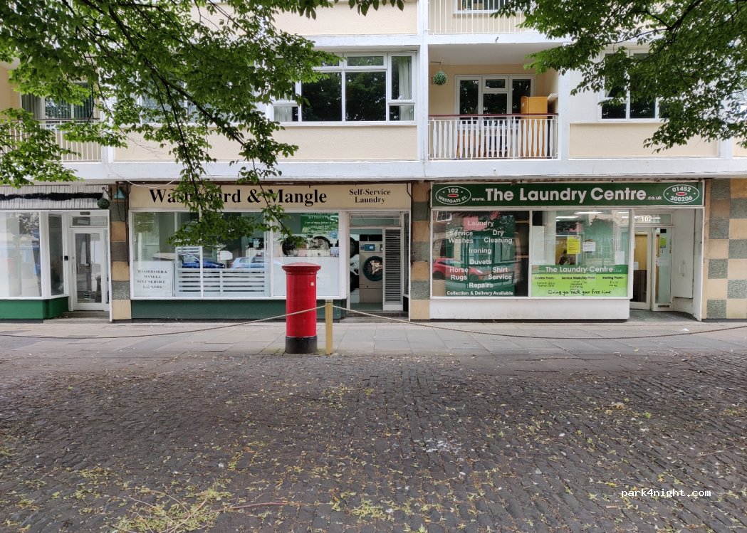 Couple of self-service laundry spots in here. Can park in a supermarket nearby. Maximum stay is 2.5h.