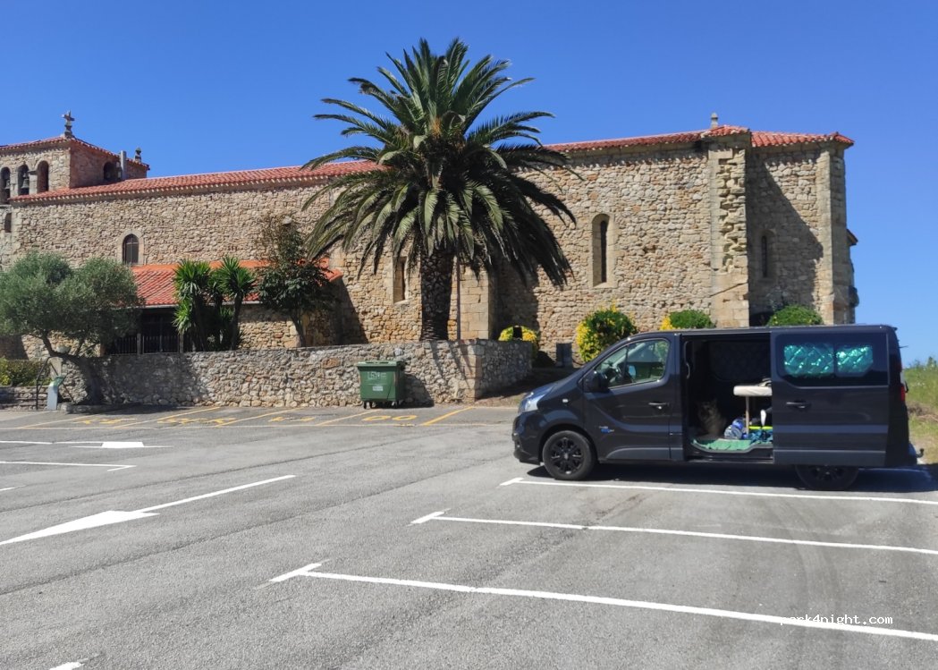 Estacionamiento de una hermosa iglesia pequeña, en el camino a Santiago de Compostela. Magnífica vista, puesta de sol. Conveniente y tranquilo para una noche.