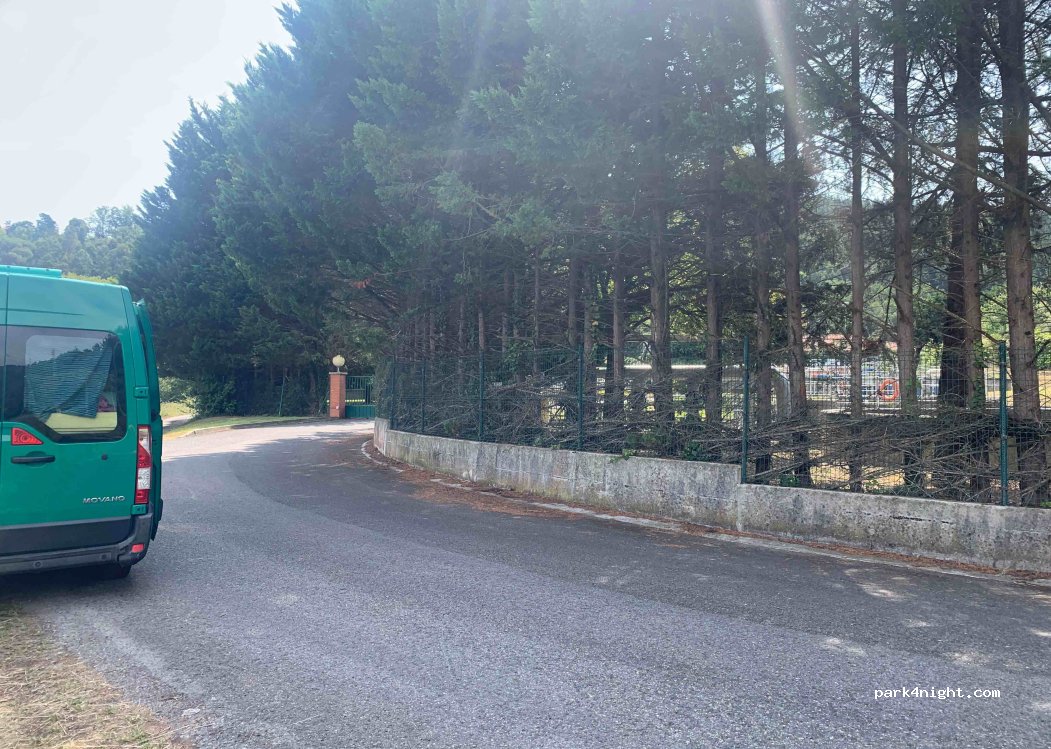 As there was nowhere else to stay we stayed here for the night and had no problems (it was the weekend). putting yourself on the side of the road doesn't bother anyone. 10-15 minutes on a pleasant walk to the town center. there were also other larger vans and campers. to say that a purifier is next to it, so every now and then an unpleasant smell arrived but it was not very exaggerated.
