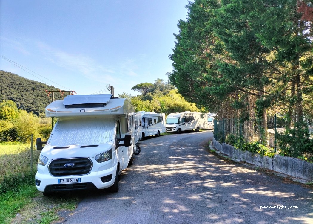 Pratique pour se garer la journée quand le pk officiel est plein. Nous sommes entrés plus au fond dans le chemin. Nous nous sommes garés sur le gazon. S’il n’y avait pas eu le bruit de la station d’épuration, nous aurions dormi là car petit air de campagne. Nous avons préféré dormir sur celui près de la route