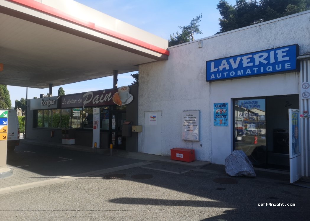 Pour la douche : au top ! 3 € par personne, il faut demander à la station service, la caissière est très agréable. Je n'ai pas essayer la laverie.