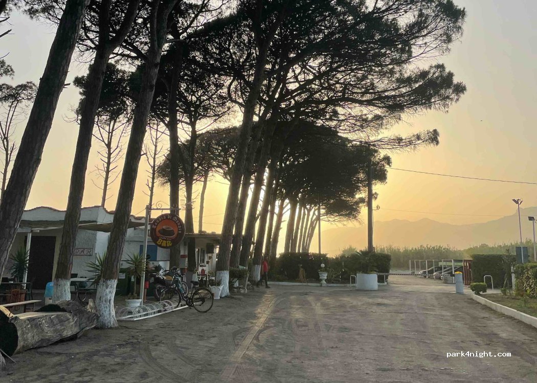Der Mann am Empfang spricht fließend Englisch. Wir sind um 14 Uhr angekommen und am nächsten Tag um 18:30 abgefahren. Für 2 Erwachse und 2 Kinder haben wir 36 Euro bezahlt. Toiletten sind alt aber sauber. Geduscht haben wir in unserem Wohnmobil. Der Strand ist naturbelassen und besteht aus schwarzem Sand und ist größtenteils sauber. Die Dauercamper waren alle nett sprechen aber nur Italienisch.