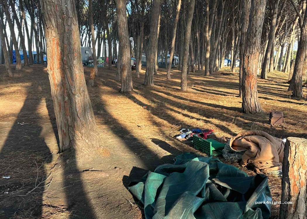 Camping Pineta di Pasquale Carpino Conseil d'initié absolu - camping avec accès direct à la plage de couleur noire. Il y a principalement des campeurs italiens de longue durée, presque personne ne parle un mot d'anglais. Cependant, une ambiance agréable et chaleureuse. L'opérateur est très sympathique - et permet aux camping-cars avec des tentes de toit de choisir leur propre espace dans la forêt adjacente (à 20 m de la plage). Les mobil-homes plus grands occupent une parcelle. Une alternative parfaite aux campings hors de prix et surpeuplés autour de Terracina. Recommandation! Il se passe peu ou rien à la plage.