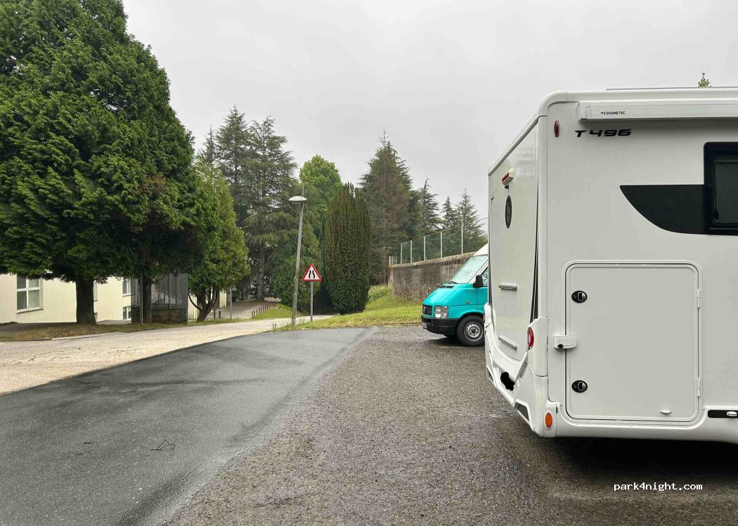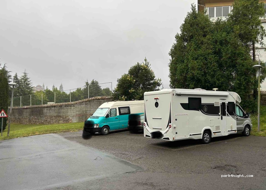 We spent one night here, it is a quiet place to park level and 10 minutes walk from the cathedral of Santiago. There is space for 5 . Down the street there are more parking spaces next to the park, but we found it noisier. Ideal to visit the city in one day.