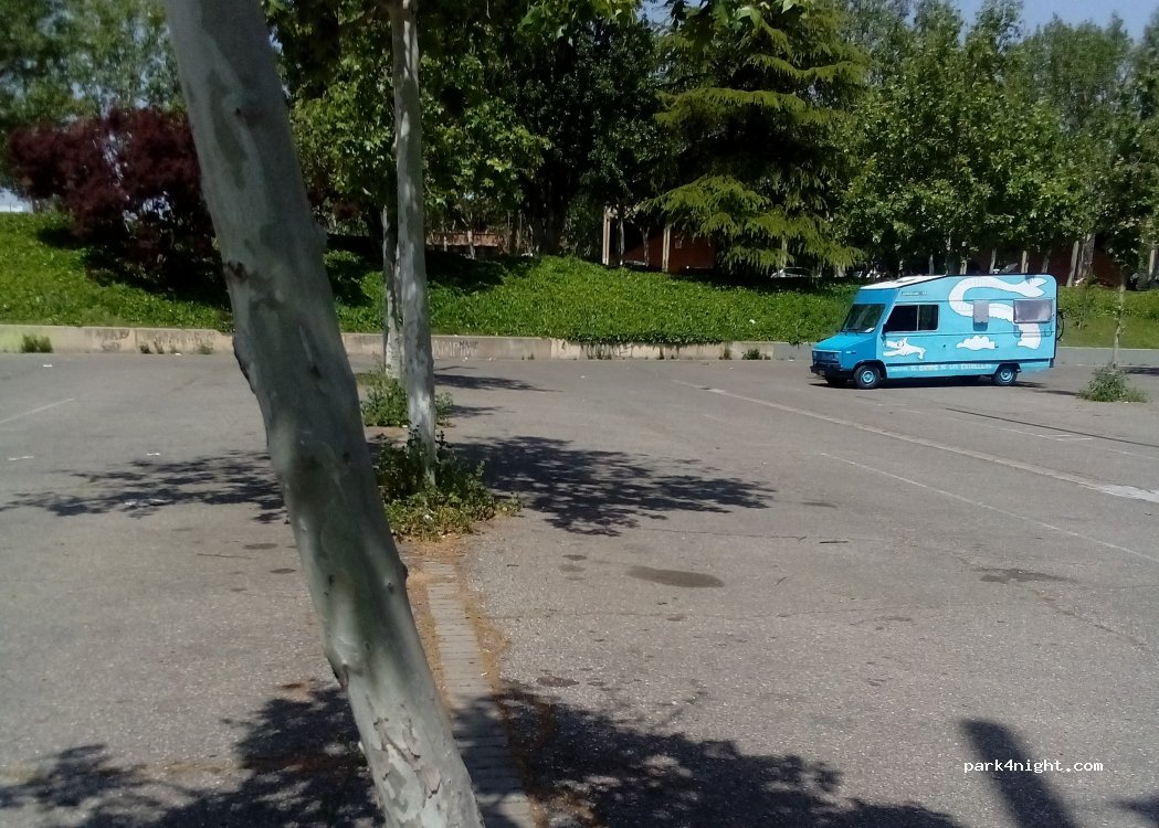 buen sitio para una pernocta ya conocer la ciudad, carril bici a tramos hasta el centro. sin servicios. es aparcamiento del estadio de fútbol, los jueves hay mercado y está prohibido.