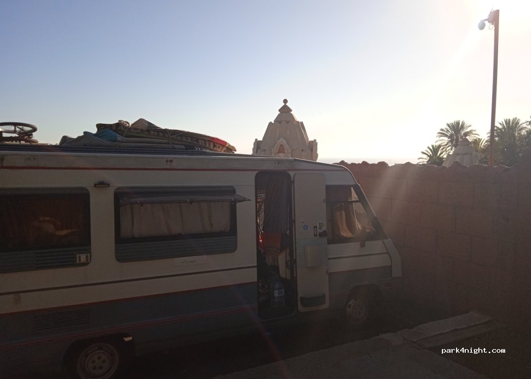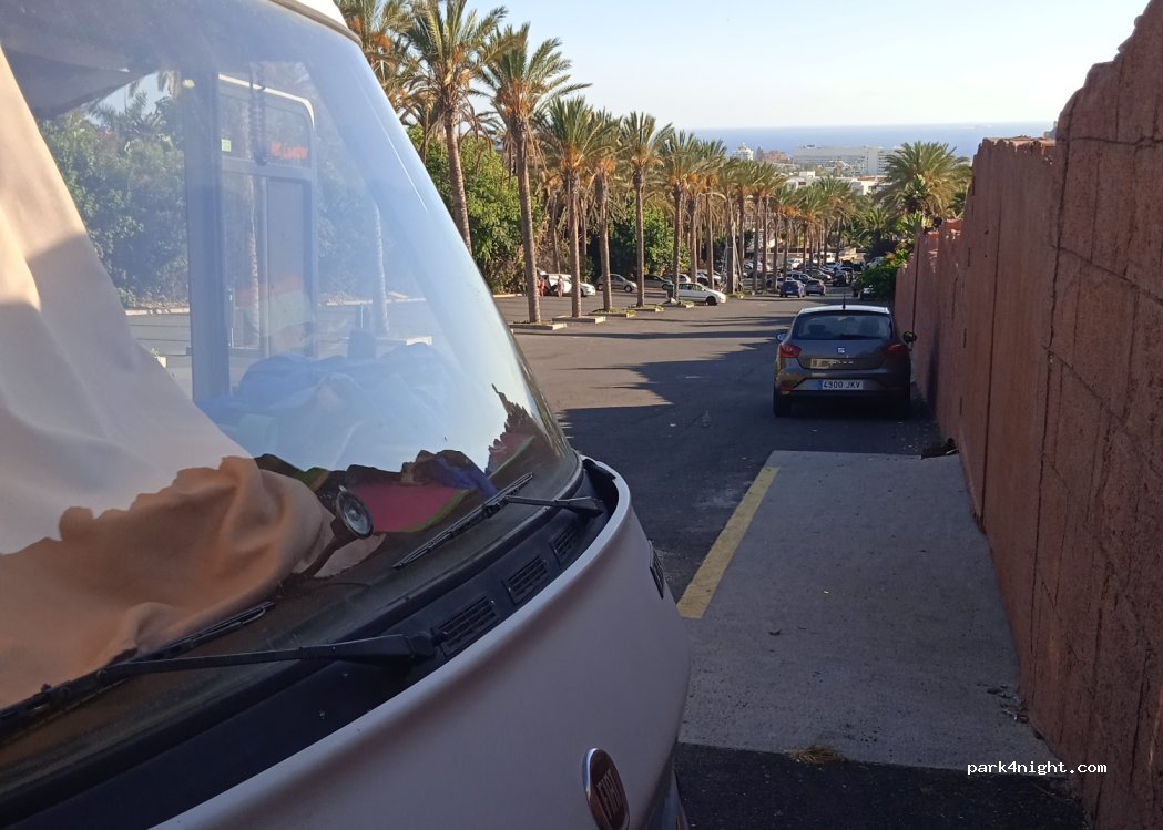 Free parking next to the Siam Park facilities. I didn't stay overnight, just left the motorhome on all day to enjoy the water park. quite a slope but it didn't affect the gas fridge. I just parked under a security camera as I had bikes in the back and surfboards on the roof. when I came back I found everything in order