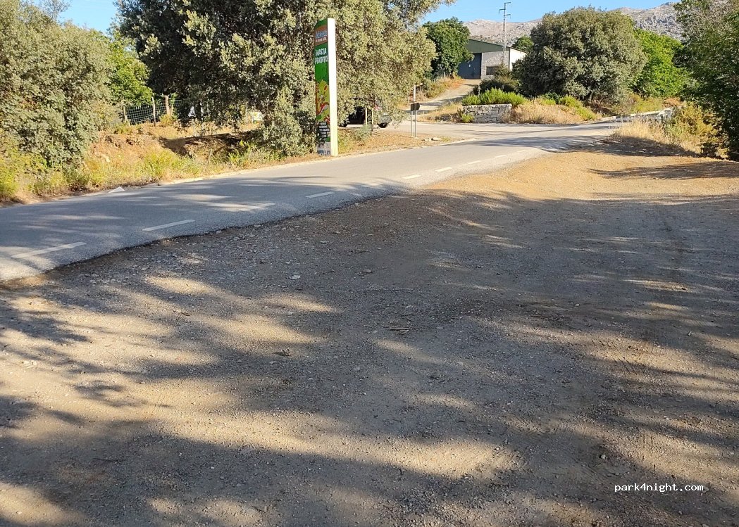 Parking at the roadside at the entrance to juzcar. Little passage at night, good to spend a night there before leaving for hiking or canyoning.