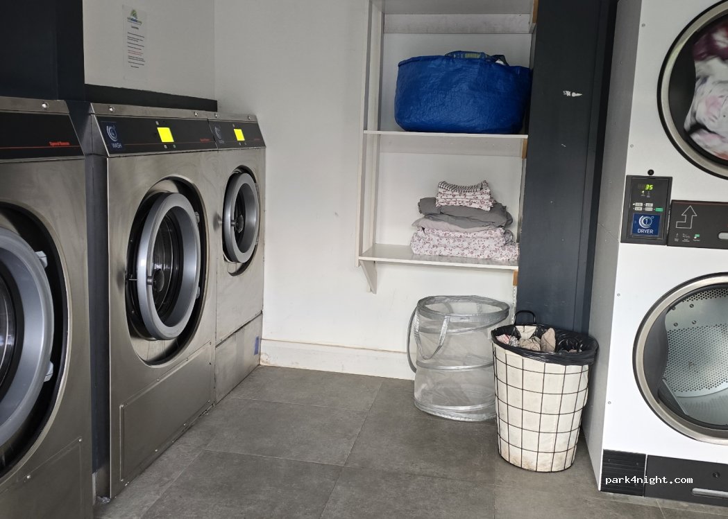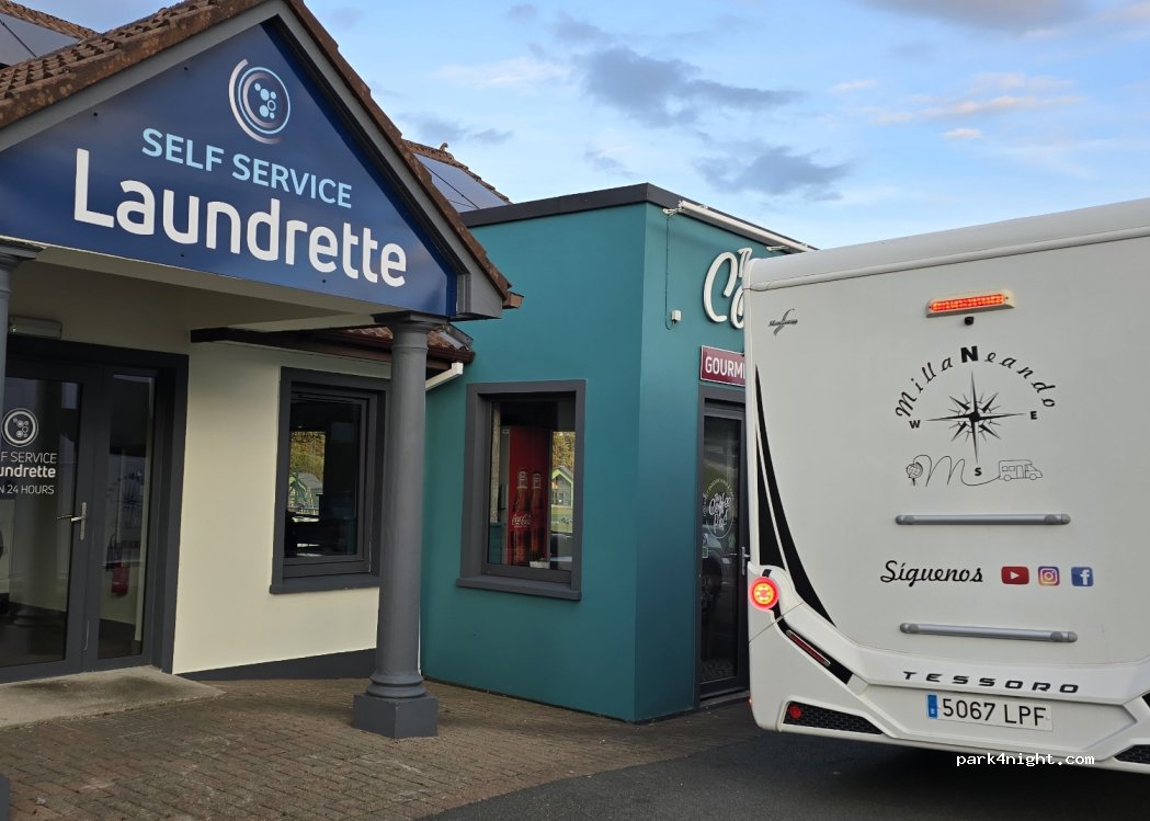 Wild Atlantic Camp use the public laundromat to do their camp laundry. They have even put notices up to say Mondays is a busy day for them. Don't use any Wild Atlantic Camp facilities while you use this public service. They let us park for free for one hour whilst we did our laundry. Nice lad and appreciated. Nice coffee shop and takeaway in the same location.