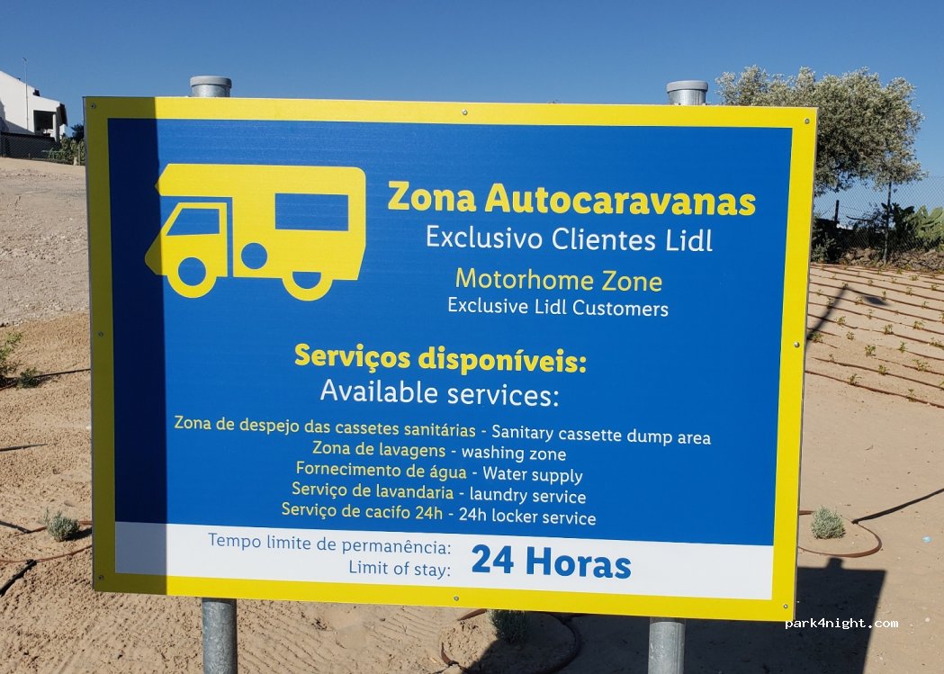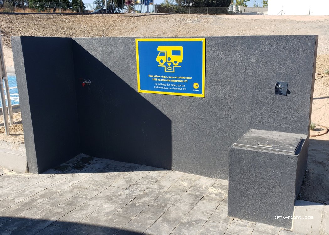Muitos parabéns ao Lidl, com área para pernoitar 24h, despejos de água, enchimento, e máquinas para lavar a roupa.