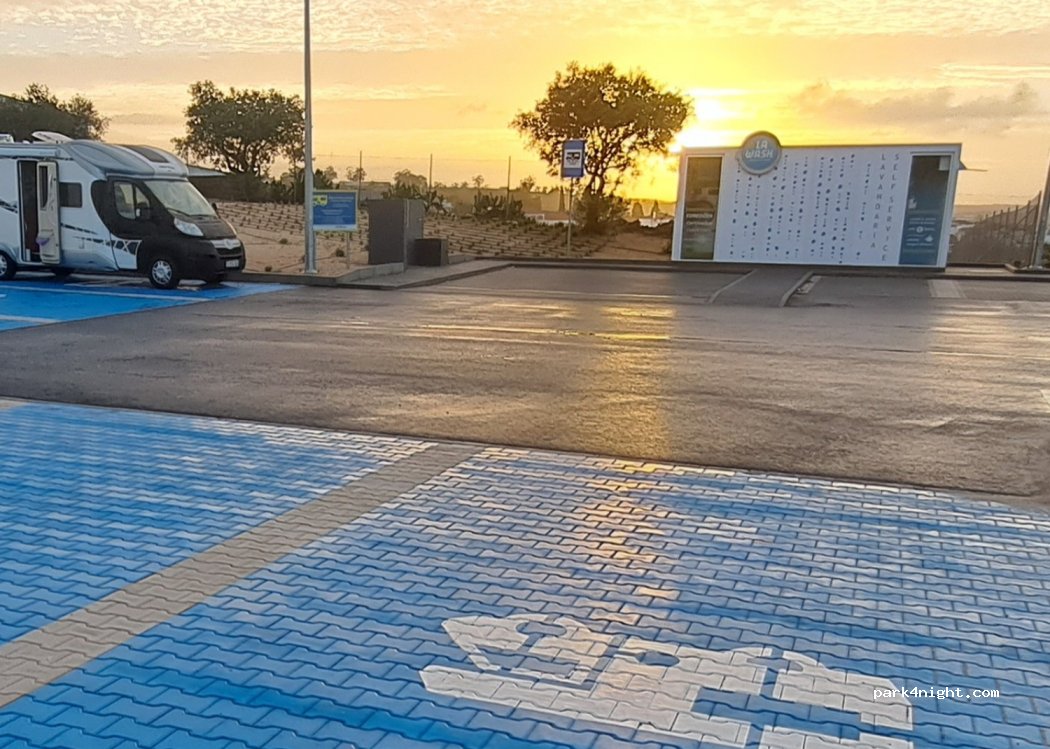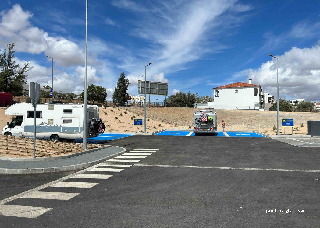 lugar super sossegado, com deposito de aguas cinzentas e da sanita. para fazer o refill de água é só pedir na caixa do supermercado. ainda tem o beneficio de poder fazer as compras antes de arrancar. recomendamos