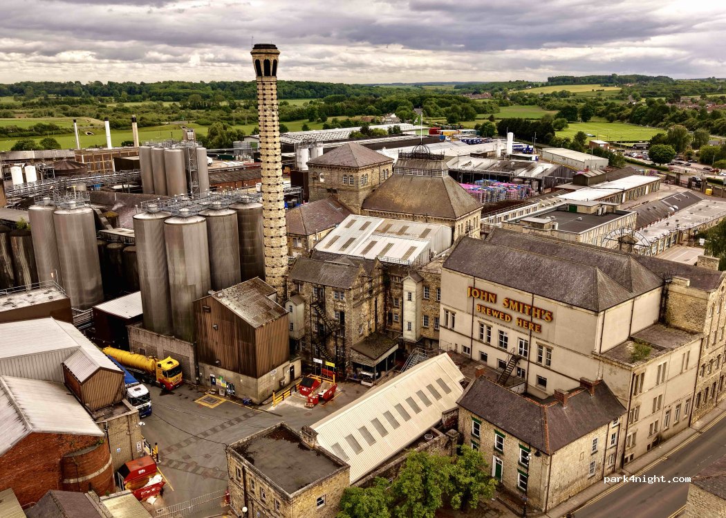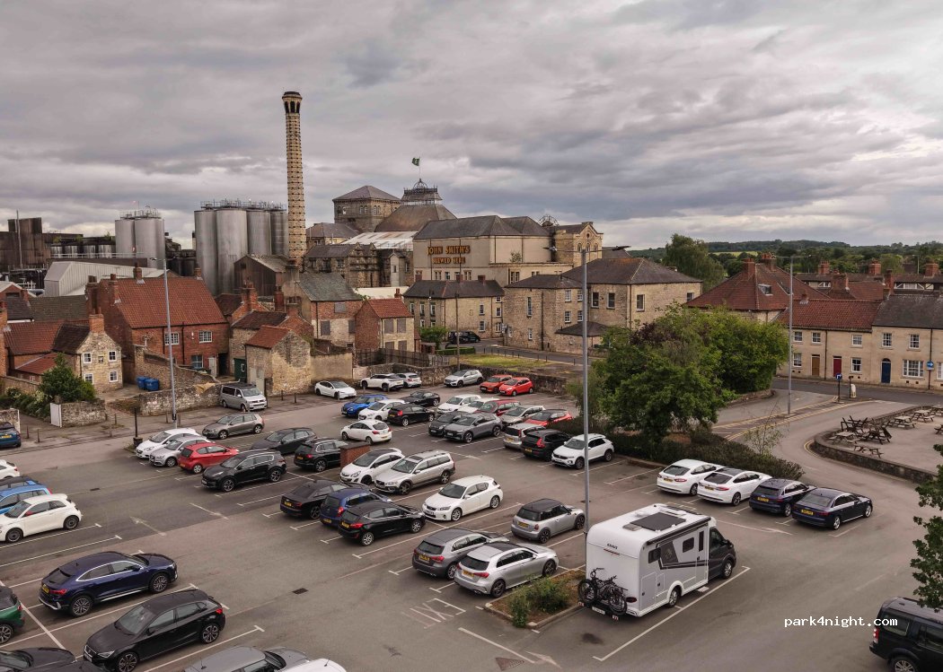 Large car park in the center of the small town of Tadcaster. Easy access to bus to York (30 mins). A few restaurants.