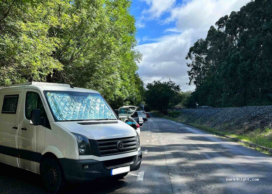 Muy buen parking, llegamos por la noche y aunque esta todo oscuro, pernoctamos sin problema, estábamos solos pero por la mañana se lleno de coches. ideal para ver las Torres del Oeste y los barcos vikingos. Al final del parking hay sitio sin ramas.