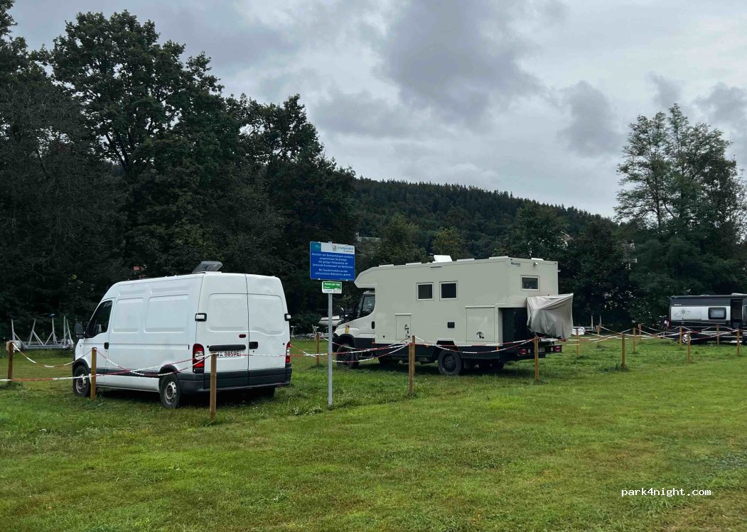Schöner ruhiger Stellplatz. 10 Plätze für Wohnmobile abgetrennt. Ab Mitte September gebührenfrei.