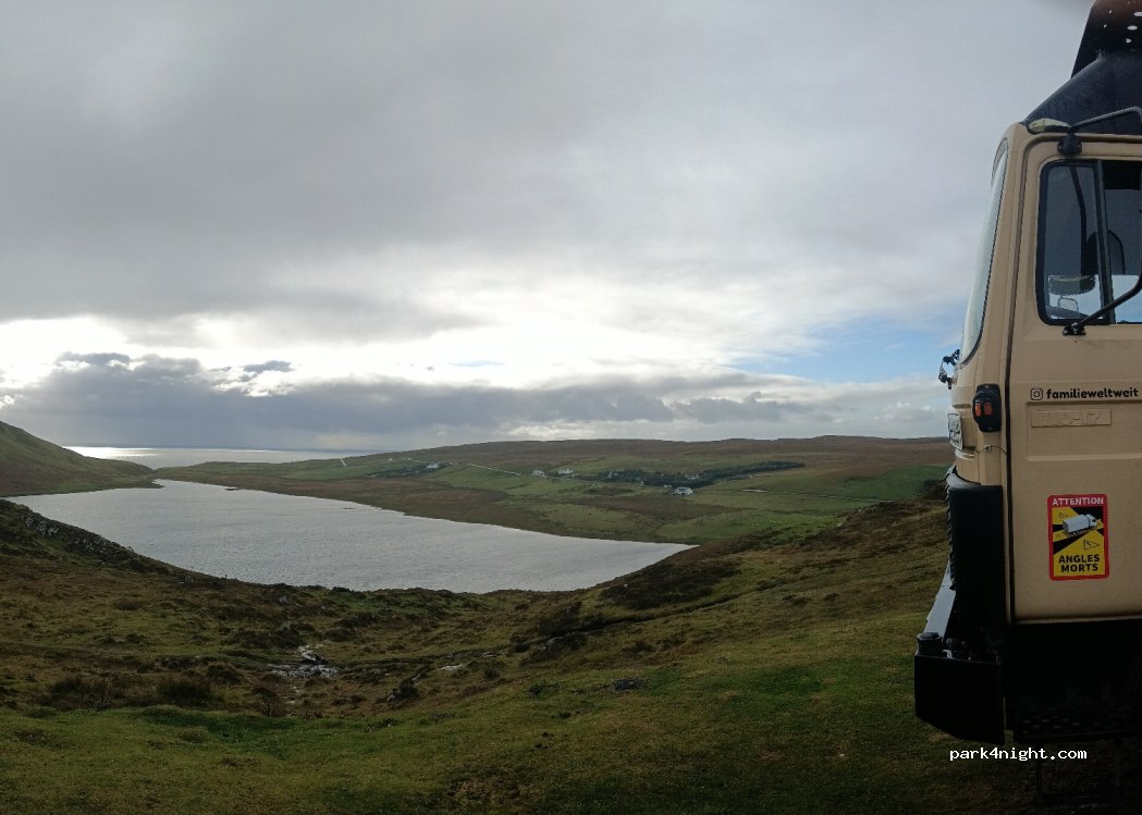 Parfait pour passer la nuit. Terrain pas très plat. Vue sur loch et mer en fond. Bonne alternative pour les gros camping-car qui auront des difficultés à aller jusqu’au parking du phare sans créer d’embouteillage.