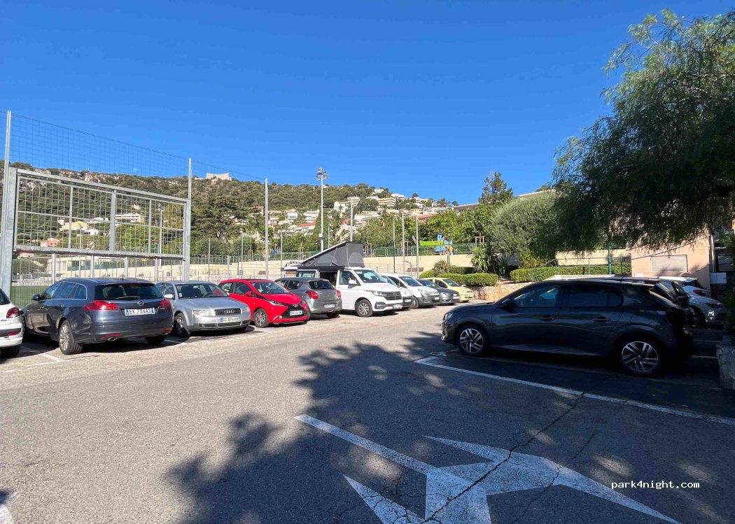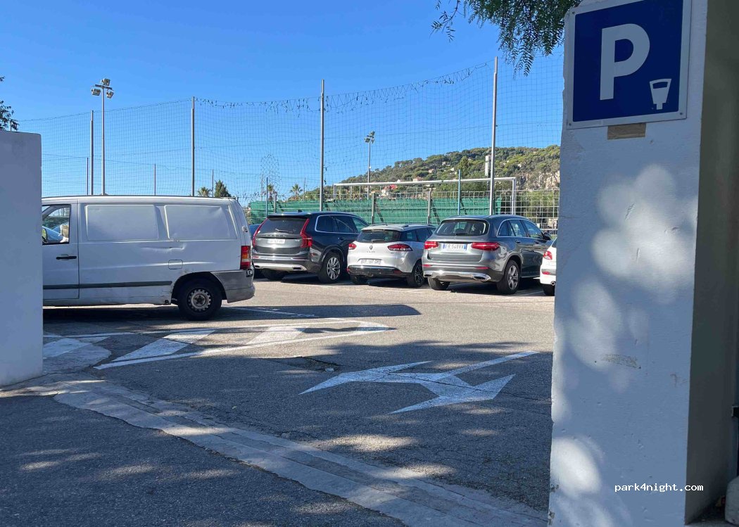 Parking free for the night, no payment from 7 pm till 9 am!! It is near the beach and the center of Villafranca. WC and public water at disposal. We spent one night with a van and it was super quiet and comfortable. Highly recommended. Parking lot are a little smaller so be careful if you have a camper