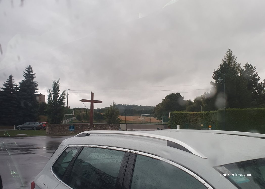 Ruhiger Parkplatz mitten im Ort. Nahe der Autobahn. Gut für eine Zwischenübernachtung.