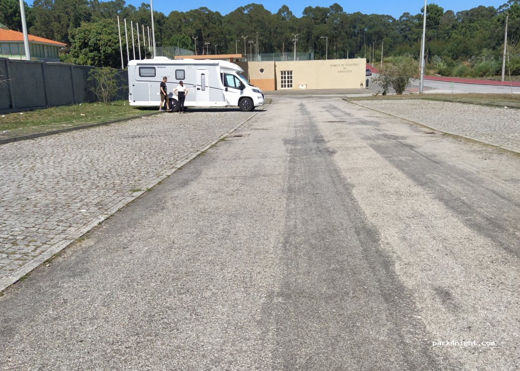 Camping de Campismo da Madalena. Está cerrado pero se puede aparcar en su pàrquing.