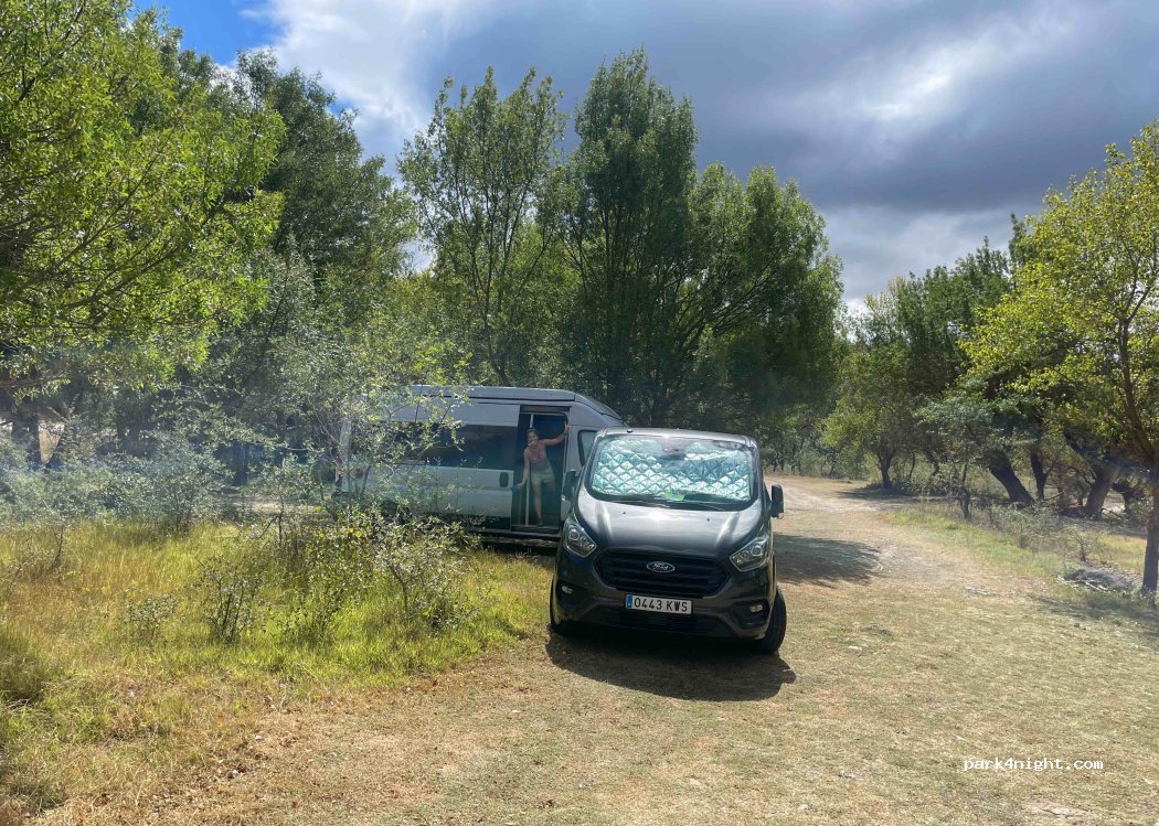 Lugar tranquilo y prácticamente solos, cerca de la carretera pero no molestan los coches al pasar.