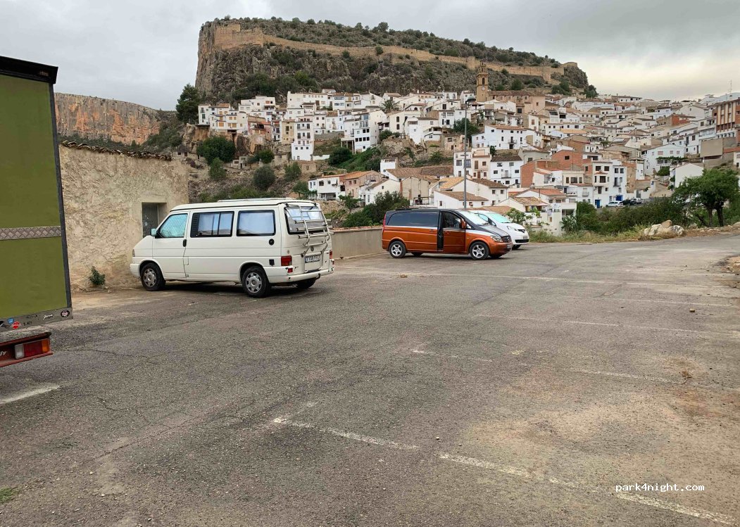 aparcamiento cerca del río, pocas plazas para autos o furgonetas grandes, campers pequeñas no hay problema. se puede visualizar antes de entrar si hay afluencia. No tiene mal acceso. Ningún servicio pero hay farolas que alumbran la noche. Vistas magníficas