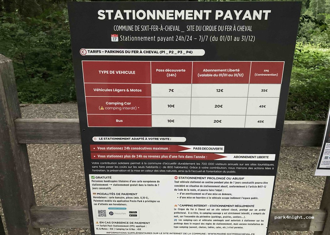 Le parking P4 est désormais payant 24h/24. 10 euros par jour ou 20 euros à l année. Horodateurs à l entrée. Parking très grand, quelques cc uniquement hier soir, très calme la nuit