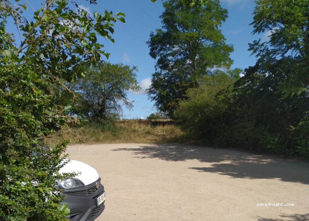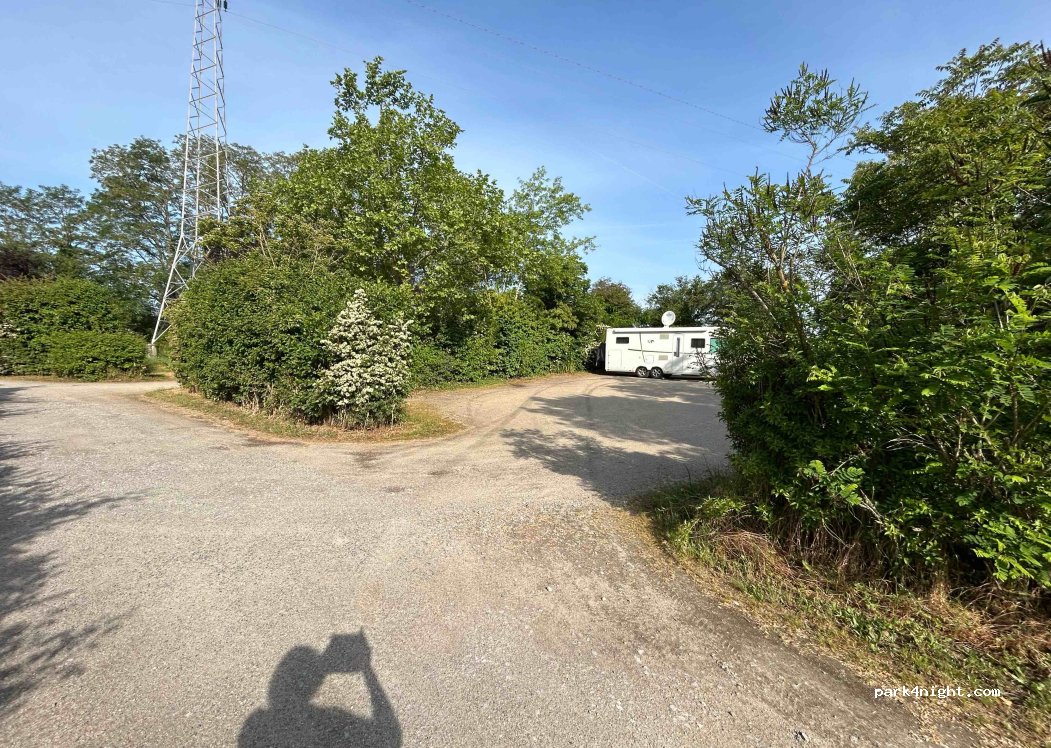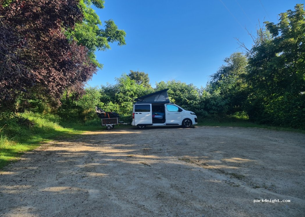 Parking entre des petits haies, près du lacs, promenades jeux pour enfants. Nuit super calme, paisible