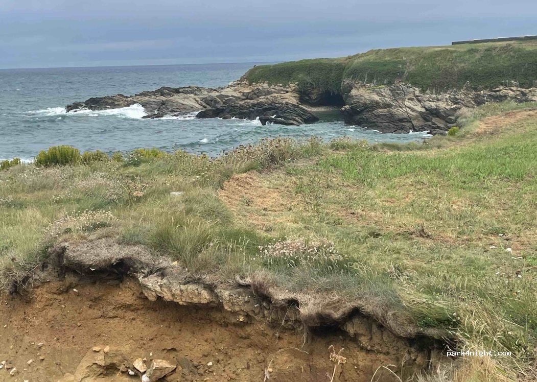 Parking très proche des plages et de belles balades. Fin mai nous étions tout seuls ! Les toilettes étaient fermées mais il y avait un point d’eau. La vue est un peu gênée par la haie.