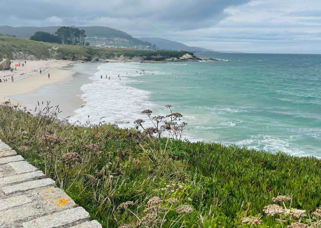 Aparcamiento frente a la playa. 8 de agosto encontramos lugar sin problemas. Hay baños públicos de la playa, que están bien. Cierran 19:30hs. Terreno Nivelado. Al centro de Foz 30 minutos caminando.