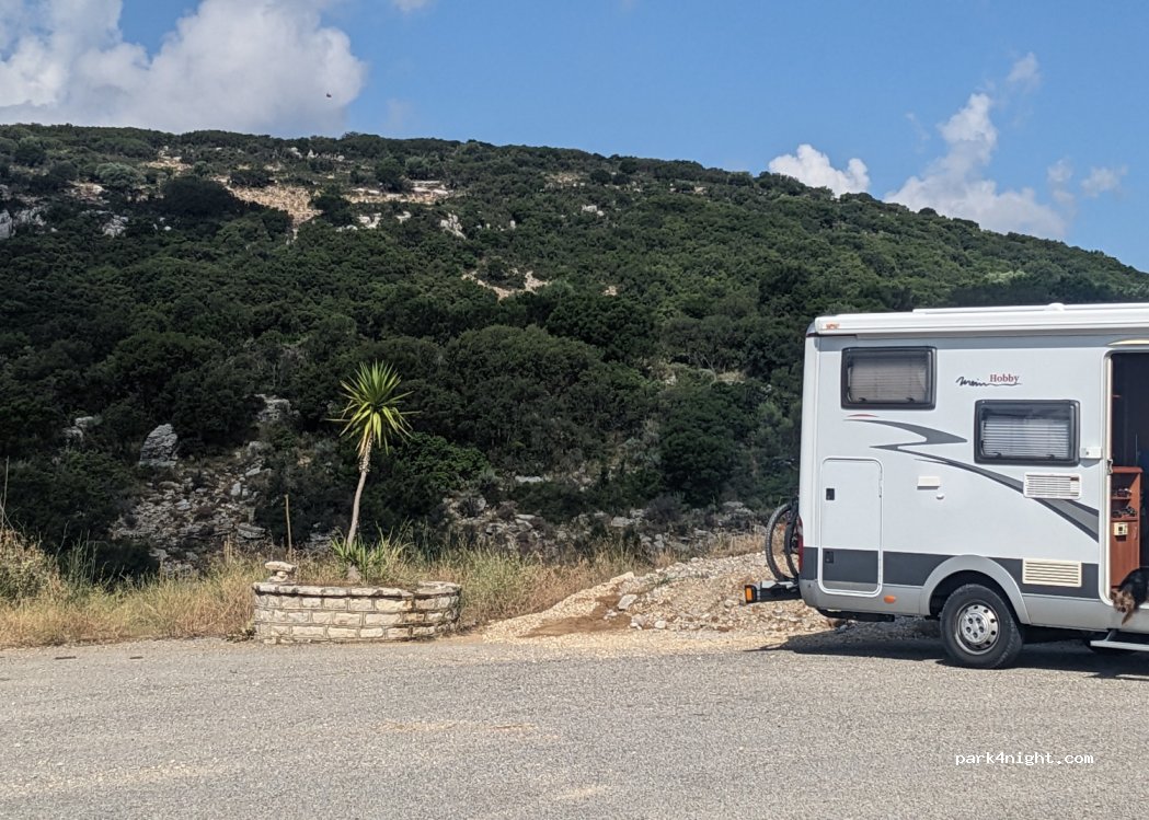 Einfach zum Übernachten (tagsüber kein Schatten) mit wunderschönem Blick auf die Küste, sauberer und erholsamer Ort, sehr wenig Verkehr und leicht abfallend