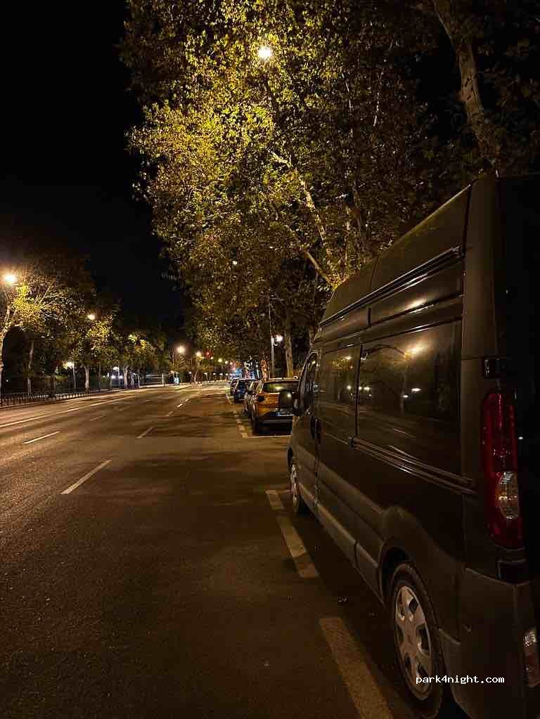 Free parking, very central, about 25 minutes walk to the old town, there is space for 3 cars or two larger vans. We stayed 2 nights and the day in between to explore the city. We felt very safe. No services and the usual city traffic didn't bother us.
