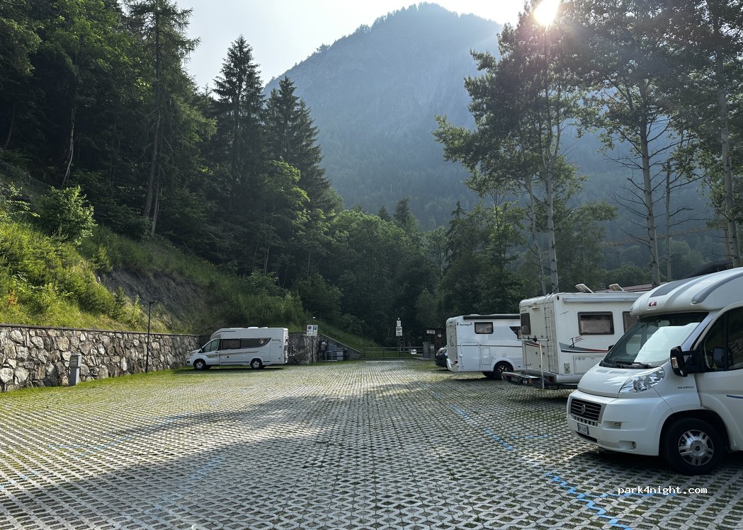 Buon parcheggio con vista sul monte bianco e vicinissimo alle terme, all'orrido ed al paese. Silenzioso e tranquillo, ci siamo trovati bene. Si prende il biglietto all'ingresso che apre la sbarra e si paga in uscita,anche con bancomat,alla macchinetta automatica, molto comodo. Carico acqua potabile non funzionante al momento.