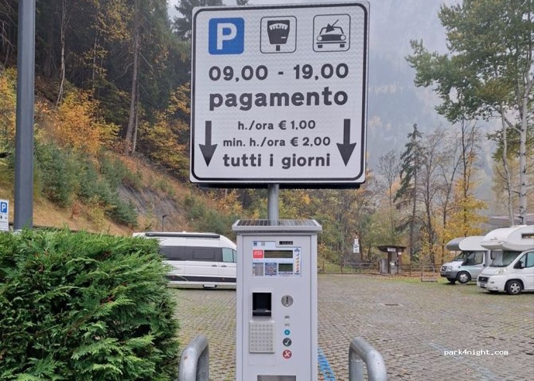 Veniamo da anni.Ora non c'è piu la sbarra ed il pagamento avviene all'esterno,tramite easy park. 1 euro l'ora dalle 9 alle 19,max 10 euro al giorno,minimo 2 ore.Hanno aggiunto 15 posti nella parte esterna,ora ci sono 34 posti.Le piazzole sono piccole ed i camper sono tutti molto vicini,impossibile mettere il tavolo Corrente non piu attiva,come mi conferma il comune:è peggiorata,quindi 4 stelle