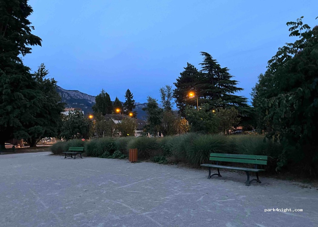 Parking gratuit bien placé à 15 min à pied du centre et de la vieille ville avec square pour enfants, poubelles et accès à l’eau potable