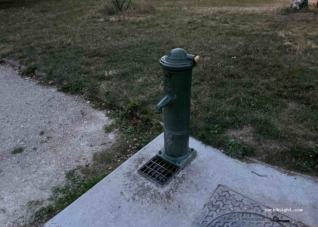 très pratique pour accéder à pied au centre de la ville. pas de problème pour se garer en van. je confirme fontaine à eau dans le square.