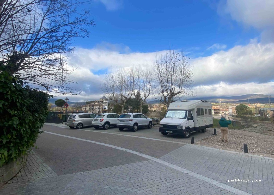 Si pillas hueco, es un buen sitio para pernocta (más agradable que el parking marcado más arriba, bancos y contenedores). Lo que si es cierto es que puede ser poco tranquilo por el paso de coches, aunque tampoco es exagerado. Ligeramente inclinado, pero muy poco. Si te pilla de paso, o quieres ver el pueblo, totalmente recomendable.
