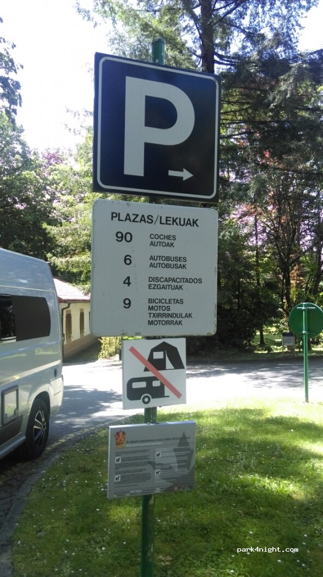 Sitio espectacular. Hemos pernoctado dos noches. La policía foral ha pasado varias veces. Sin problema. Hay una fuente abierta a 50 m del parking. Baztán Abentura Park a 20 min. Vía Verde del Bidasoa que sale de Legasa, a 3 kms. Rutas a pie y en bici por el Bértiz, por un bosque precioso y muy hmedo2. Un 10.