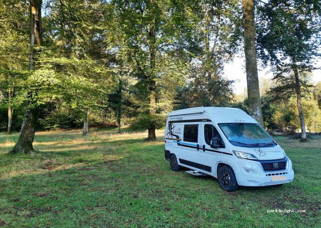 Superbe lieu en pleine forêt. Tables de pique-nique, jeux pour enfants, appareils de fitness. Départ de balades à pied ou en vélo. Stationnement à plat. Idéal familles.
