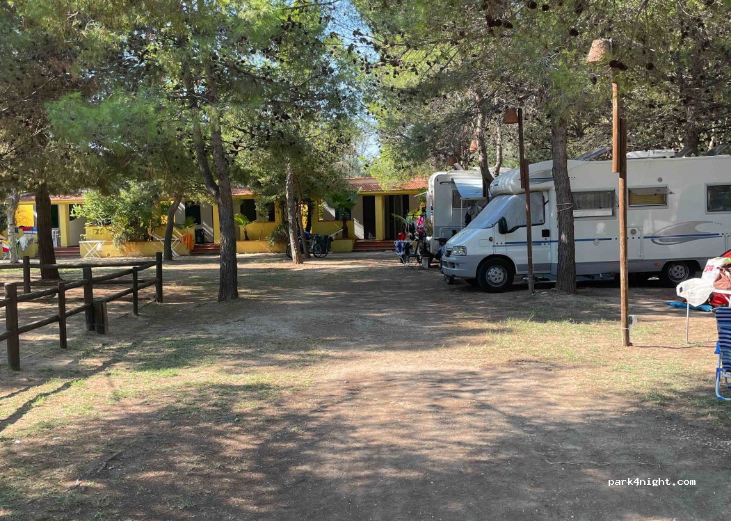 I confirm the description in the last comment. We stayed 2 nights and really enjoyed it! Massimo and his wife are generous people and happy to give advise on things to do, to visit. The camper area is surrounded by bungalows. The lack of privacy wasn’t an issue to us but it’s good to know. 10min on foot to access the beach.