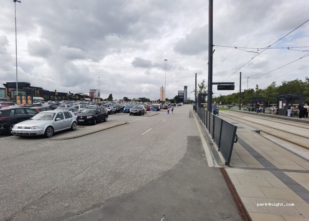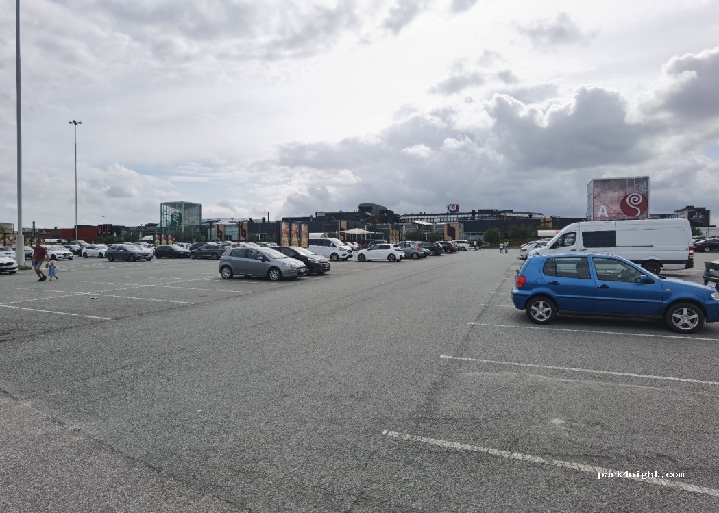 Grand parking gratuit ok pour CC jusqu’à 6 mètres si vous souhaitez ne prendre qu’une place, sinon vous pouvez stationner avec même plus grand. Poubelles et toilettes dans le centre commercial. Tram qui amène au centre ville en 12 minutes pour 30 kr aller retour pour une personne.