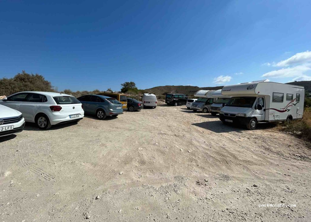 Pasamos una noche aquí junto con otra autocaravana. El suelo tiene desniveles pero hay zonas que si aparcas bien no se nota. Una zona muy tranquila donde descansamos bastante bien. Desde aquí se accede al sendero que lleva a la cala de enmedio.