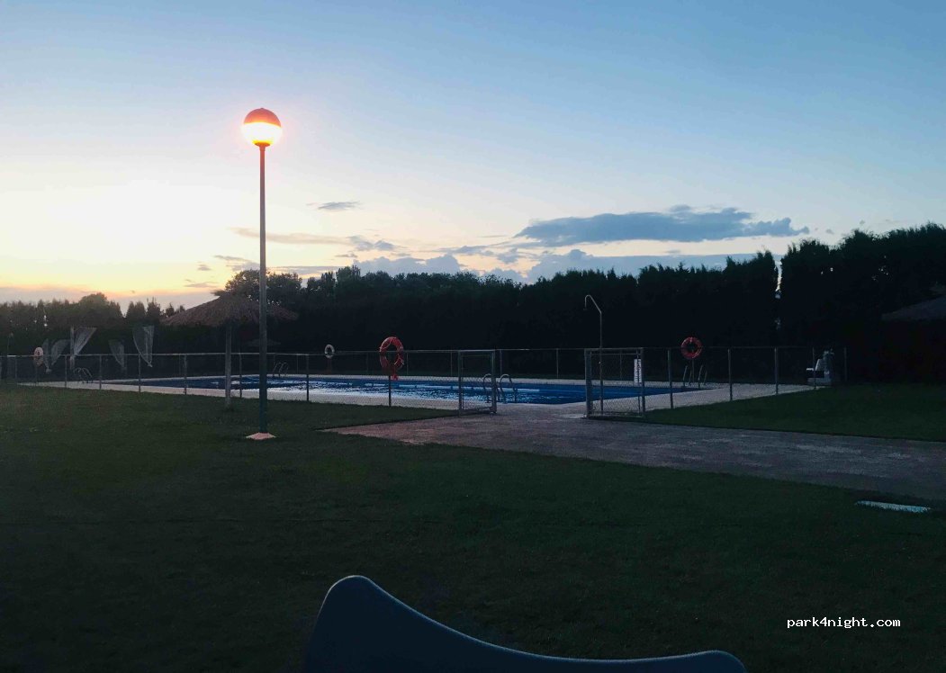 Es el parking de la piscina del “pueblo” tiene lugar para unas 8 campers, las chicas del bar de la piscina son súper majas, se puede usar la piscina y entrar al recinto con los perros. El lugar es increíble y tranquilo en verano, yo he dormido dos veces en diferentes meses y vale la pena.