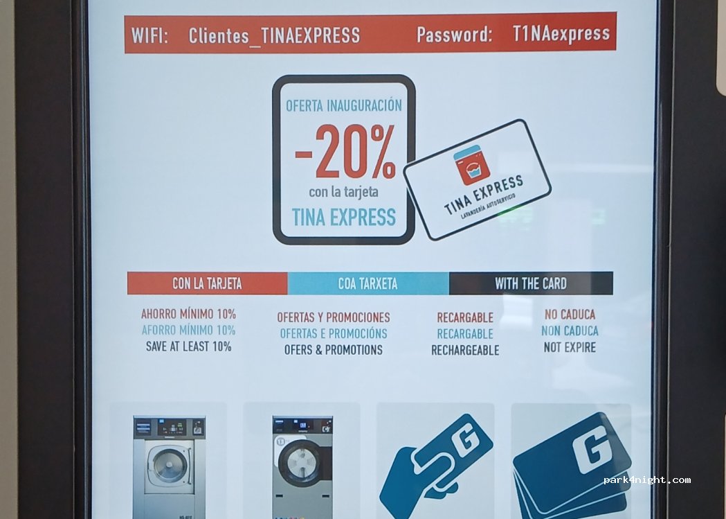 Super Sauberer Waschsalon, gegenüber vom Mercadona, mit WiFi, Passwort ist= T1NAexpress Danke