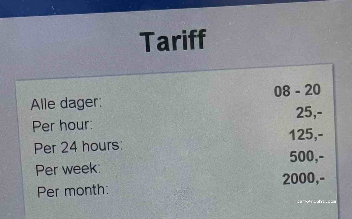 Pratique pour visiter la ville car proche du centre mais très cher, nous avons payé 230 NOK pour 7h45 (avec app, la plaque est scannée à l’entrée et à la sortie du parking, il faut juste activer cette option dans l’application)